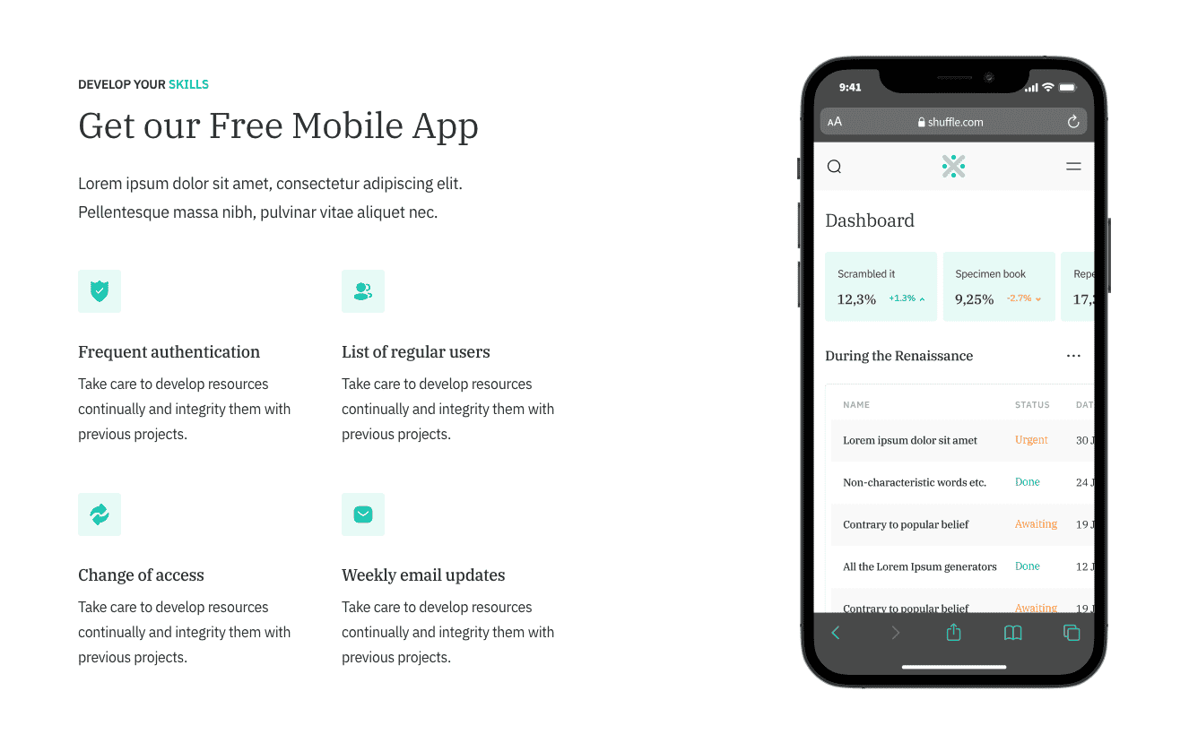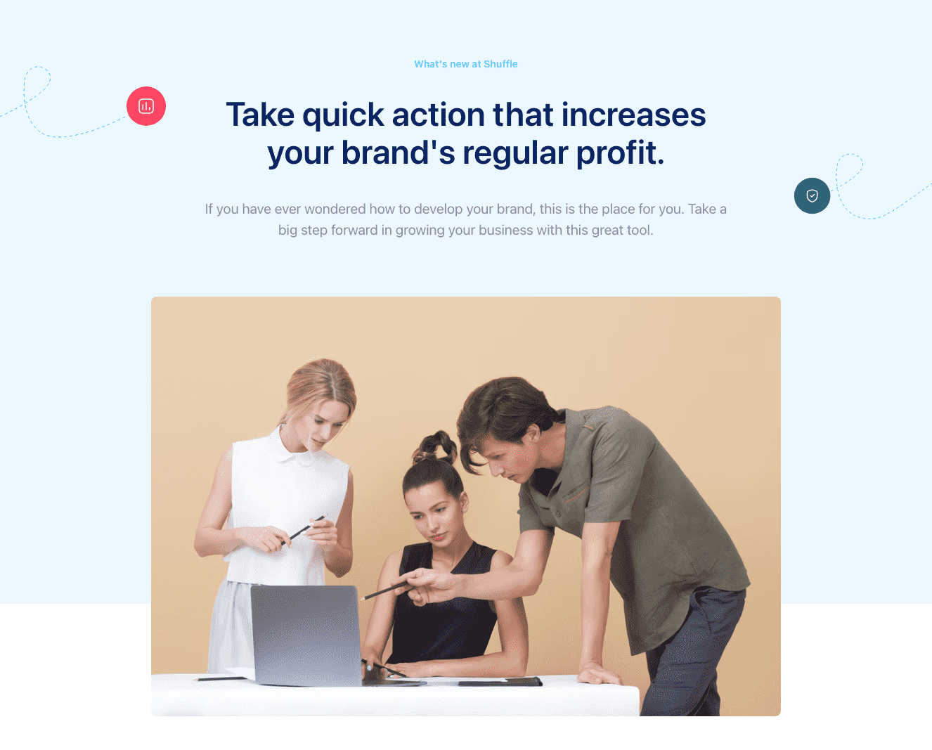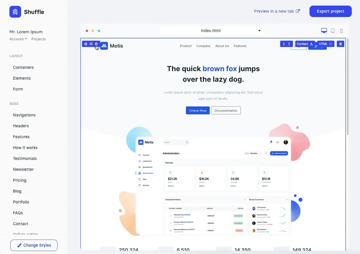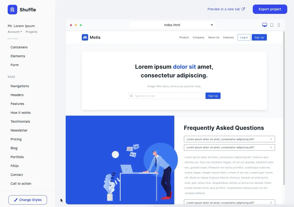 Shuffle offloads your company's design team. Included UI libraries give you free rein to create any template. Change the basics and create something unique!