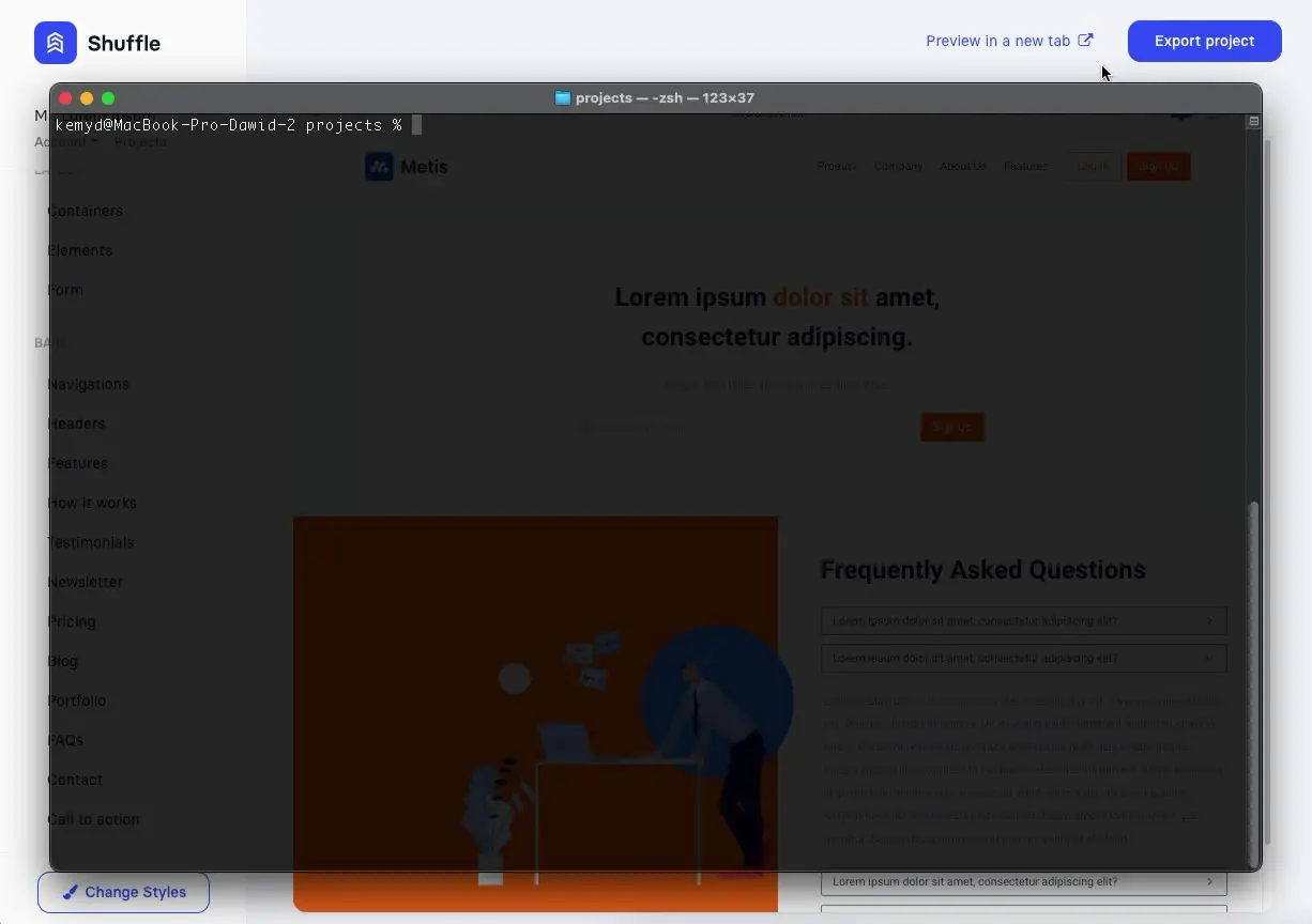 Access the Shuffle Editor, UI Library Creator, AI Assistant, Alternatives, Components Gallery, and create templates in the most convenient method for you.