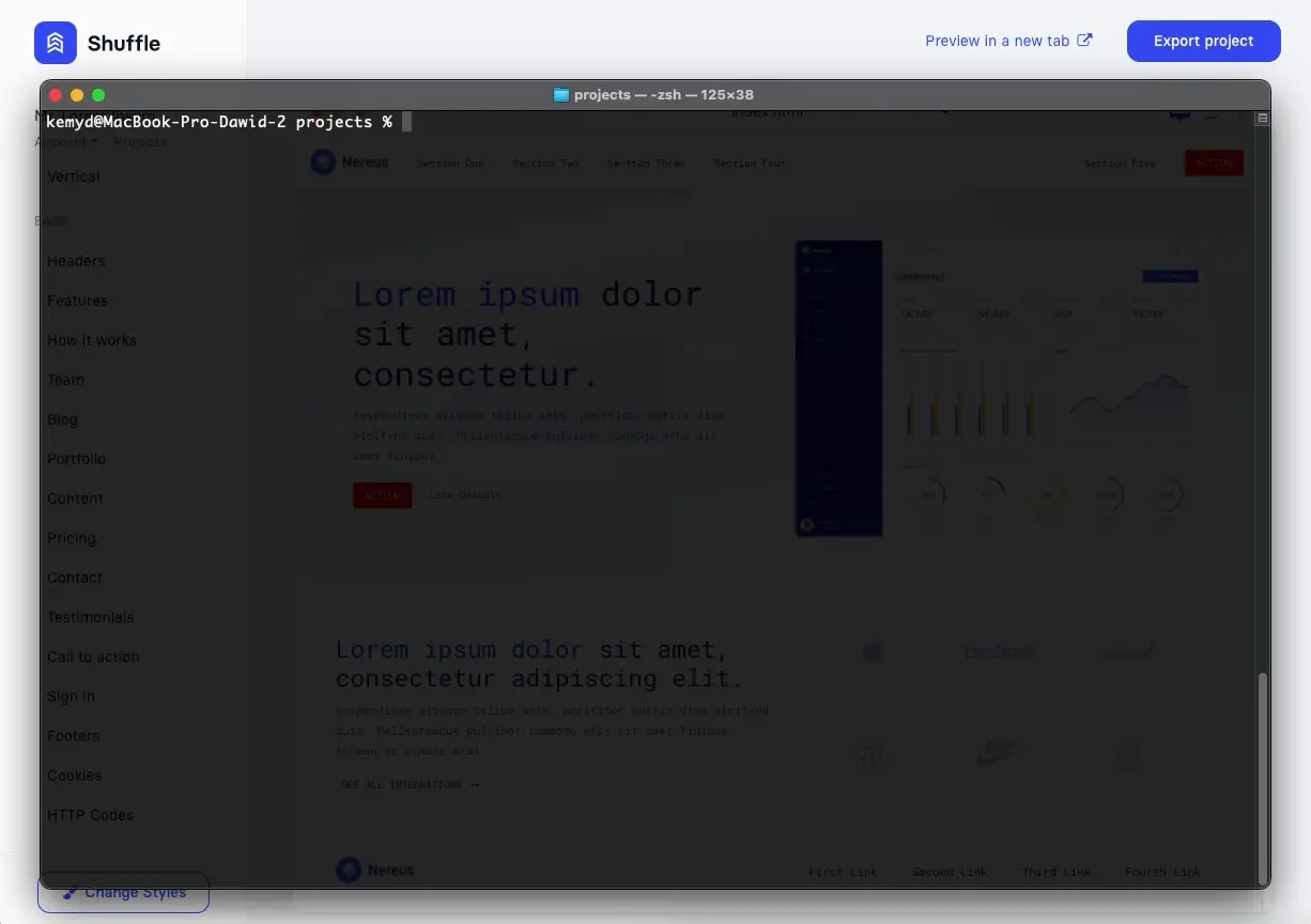 Click export and download the project with all sources. No external dependencies and no vendor lock-in. Smooth cooperation guaranteed! You can also deploy code to Git or via SSH if needed!