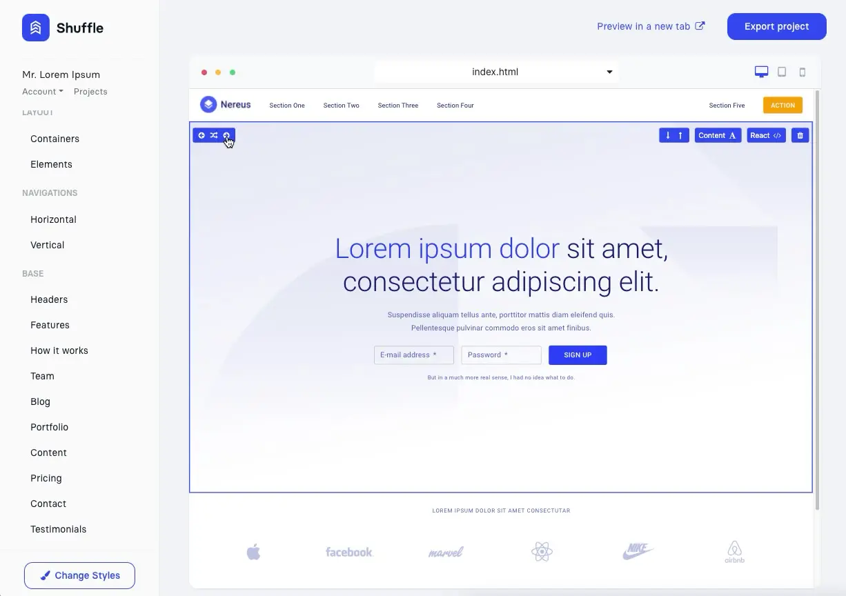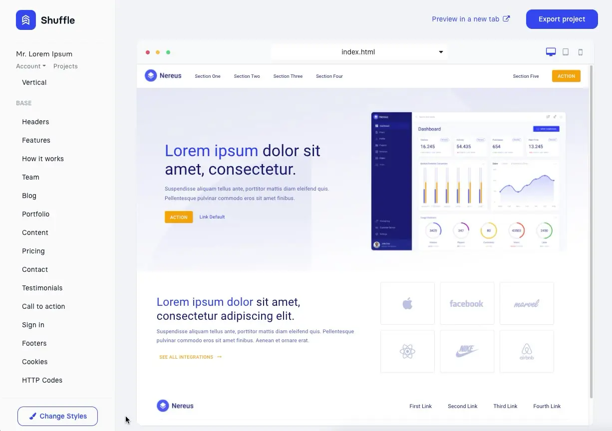 Shuffle offloads your company's design team. Included themes give you free rein to create any template. Change the basics and create something unique!